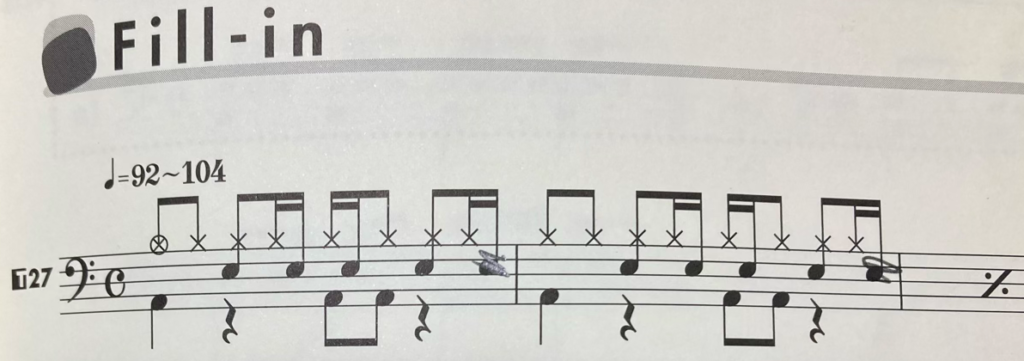 まだ完全には弾けませんが、何となくうまくはなりました。(これは、どちらのスティックで、どこをたたくか覚えていたので練習できました)