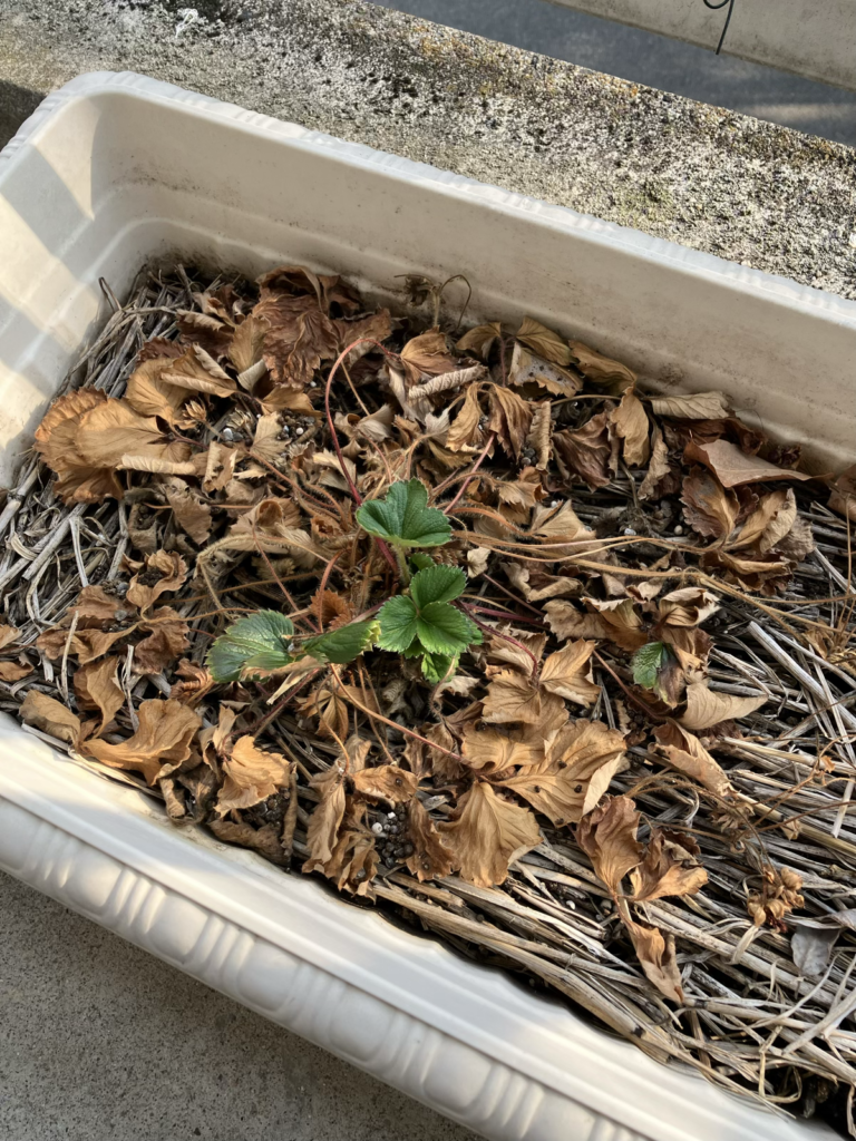 冬にベランダに出したイチゴが見事に冬を越したこと。