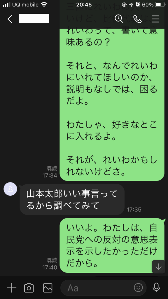 衆議院の総選挙が近づいてきたこの時期、よくあることですが、お友達からLINEで比例代表はある政党に入れてくれないかと、メールが届きました。(ある政党って、「れいわ新選組」なんですけれど・・・)