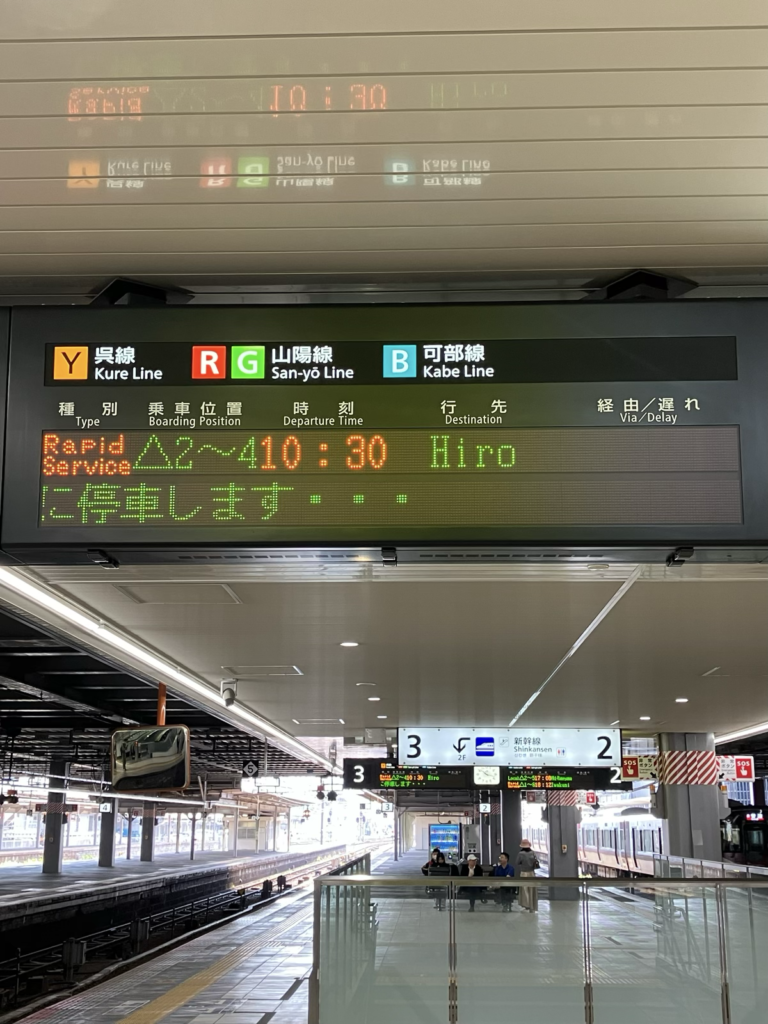 朝、広島駅発の広行きに乗りこみ、いざ出発。