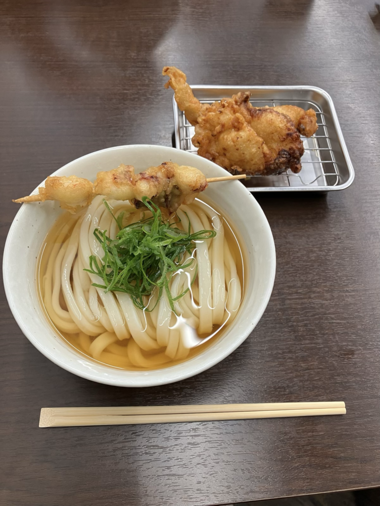 トッピングのとりの天ぷらを出汁につけて、うどんと一緒に食べたらとても美味しかったです。
