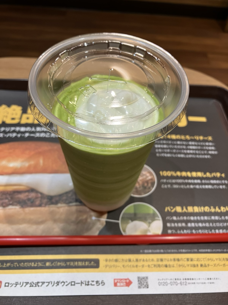 締めは、抹茶のシェイク?(商品名は忘れました。ロッテリアにあります。)