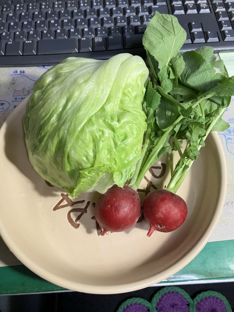 レタスとラディッシュを買ってきて水ですすいで、からしマヨネーズで食べました。