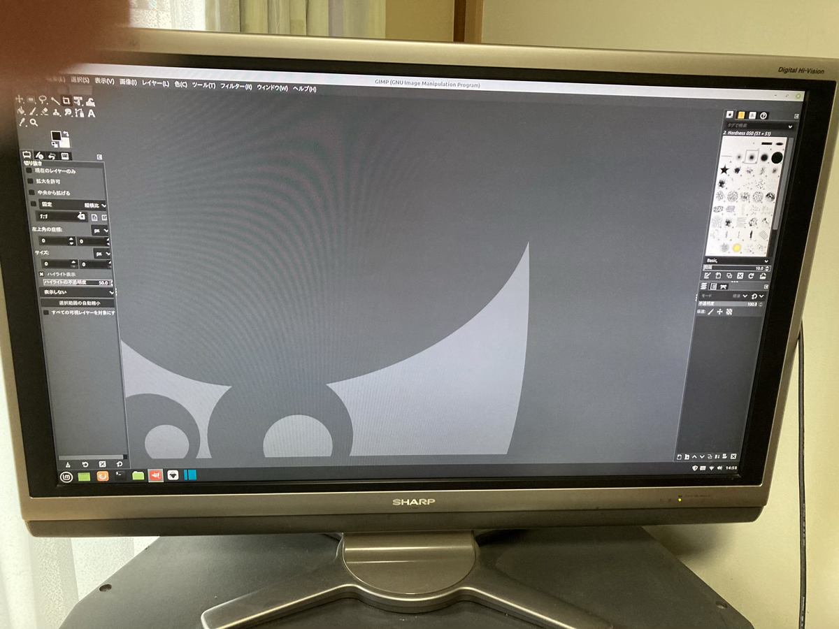 あ、一応、GIMPの日本語版の写真を載せようと、画面を写真に撮ったのですが、画面左上に指がうつてしまいした。すみません。