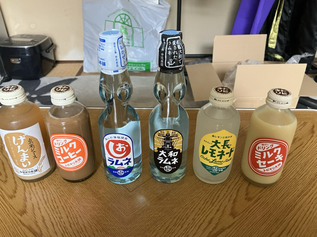 呉にある、トビキリというお店の飲み物の詰め合わせでした。全部で16本入っていたかな?