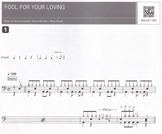 前半部分は前回の「ドラムの練習16」で演奏しています。今日は後半部分のさらに前半を1時間ひたすら練習してきました。練習したのはたったの2行にわたる部分だけです。