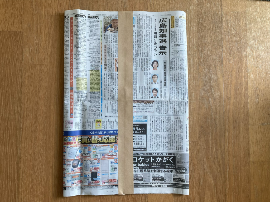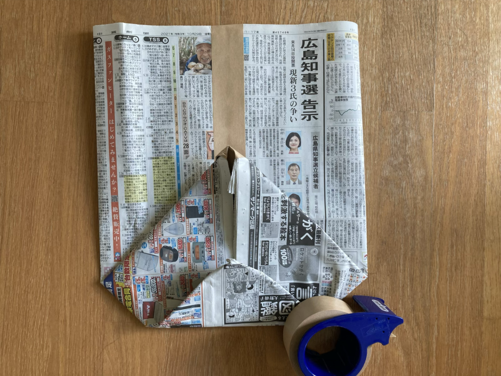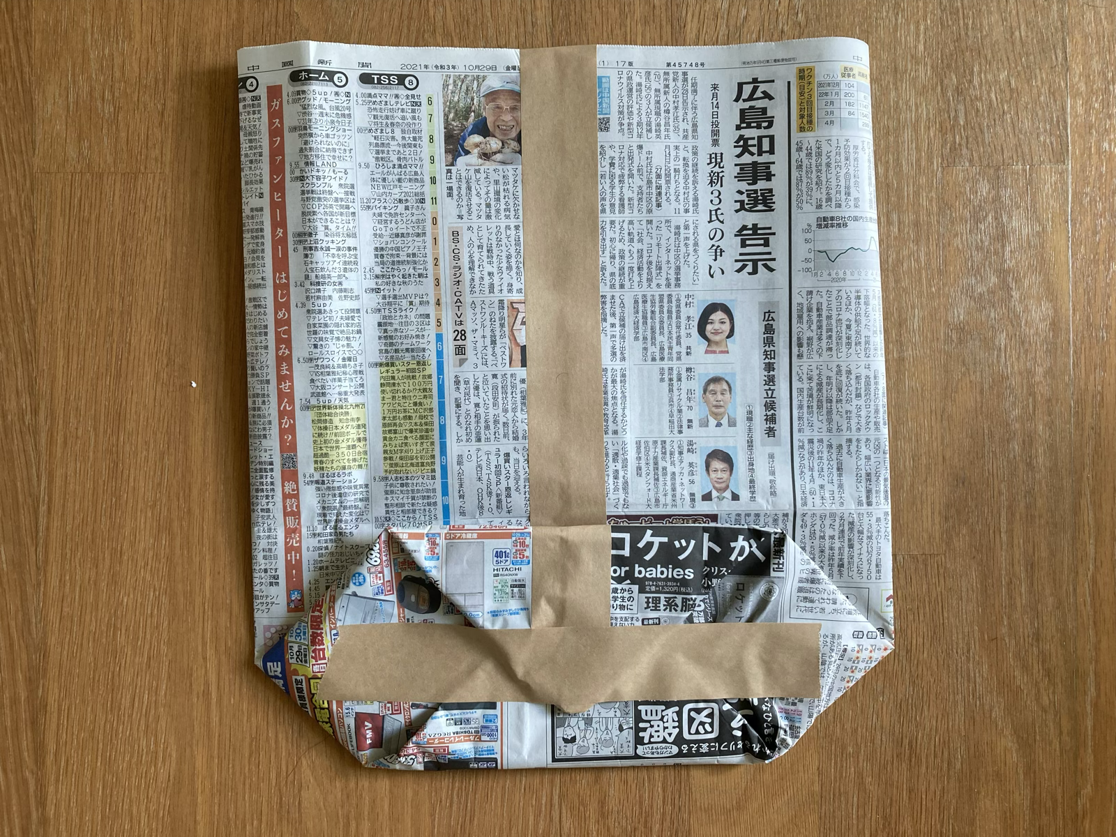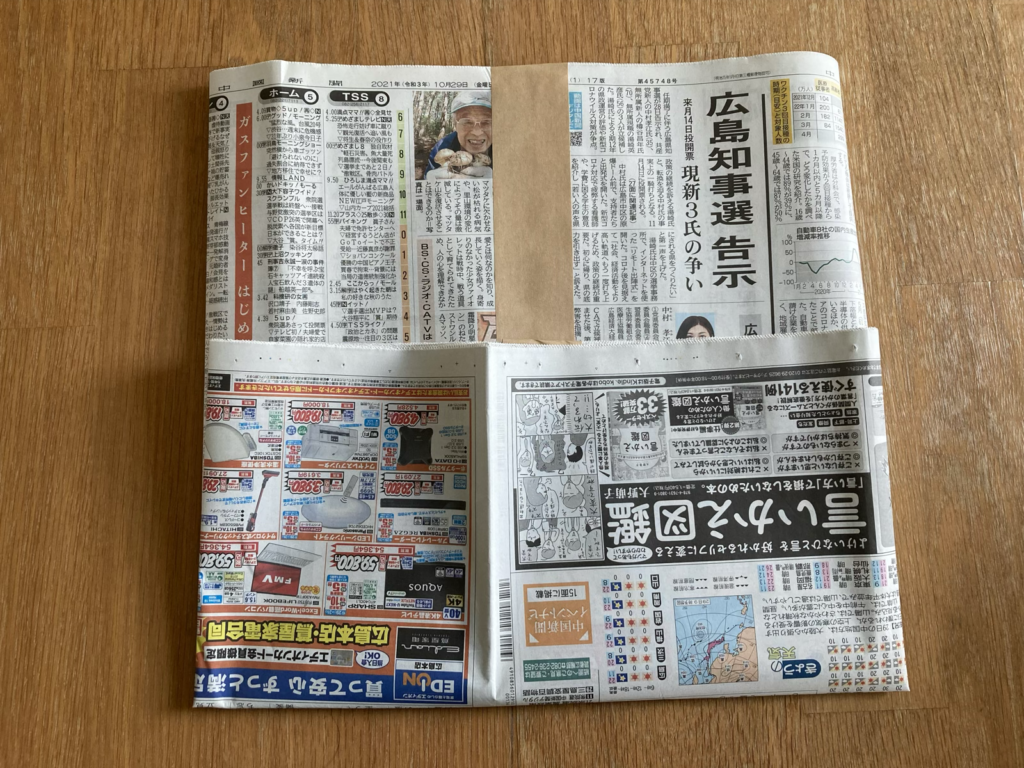最近、お友達が一人暮らしをはじめました。「生ごみの処理に困っている」らしいので、「水を切って新聞紙に包んで捨てればいいよ」といって、古新聞を少しあげたのですが、古新聞でゴミ袋をつくる、作り方をしらないということなので、簡単にブログに載せておくことにしました。