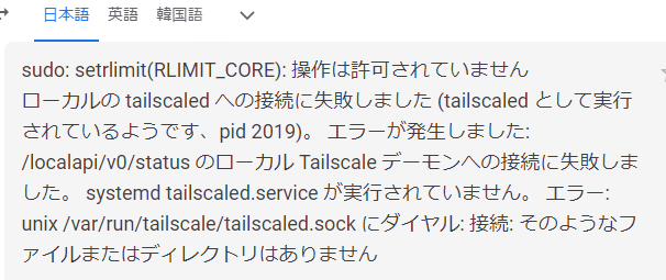 まず、昨日の段階で、Tailscale自体のインストールはできているとおもっているのですが、勘違いかもしれないので、一応、先生に見てもらうためにここにログを残します。