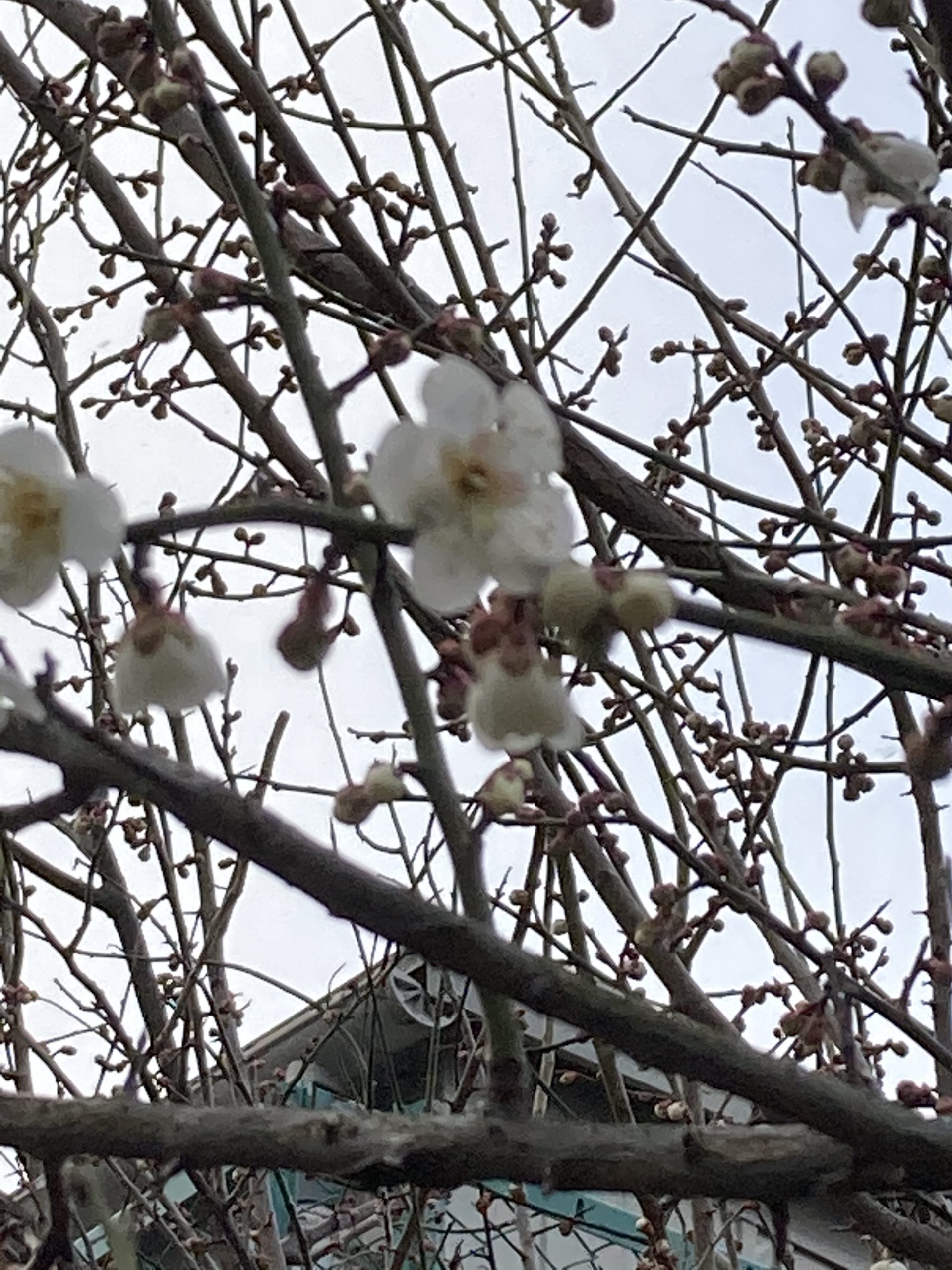 最後に、広島は、今日は午後から雪が降っていたのですが、その中で咲いていた梅の写真を・・・